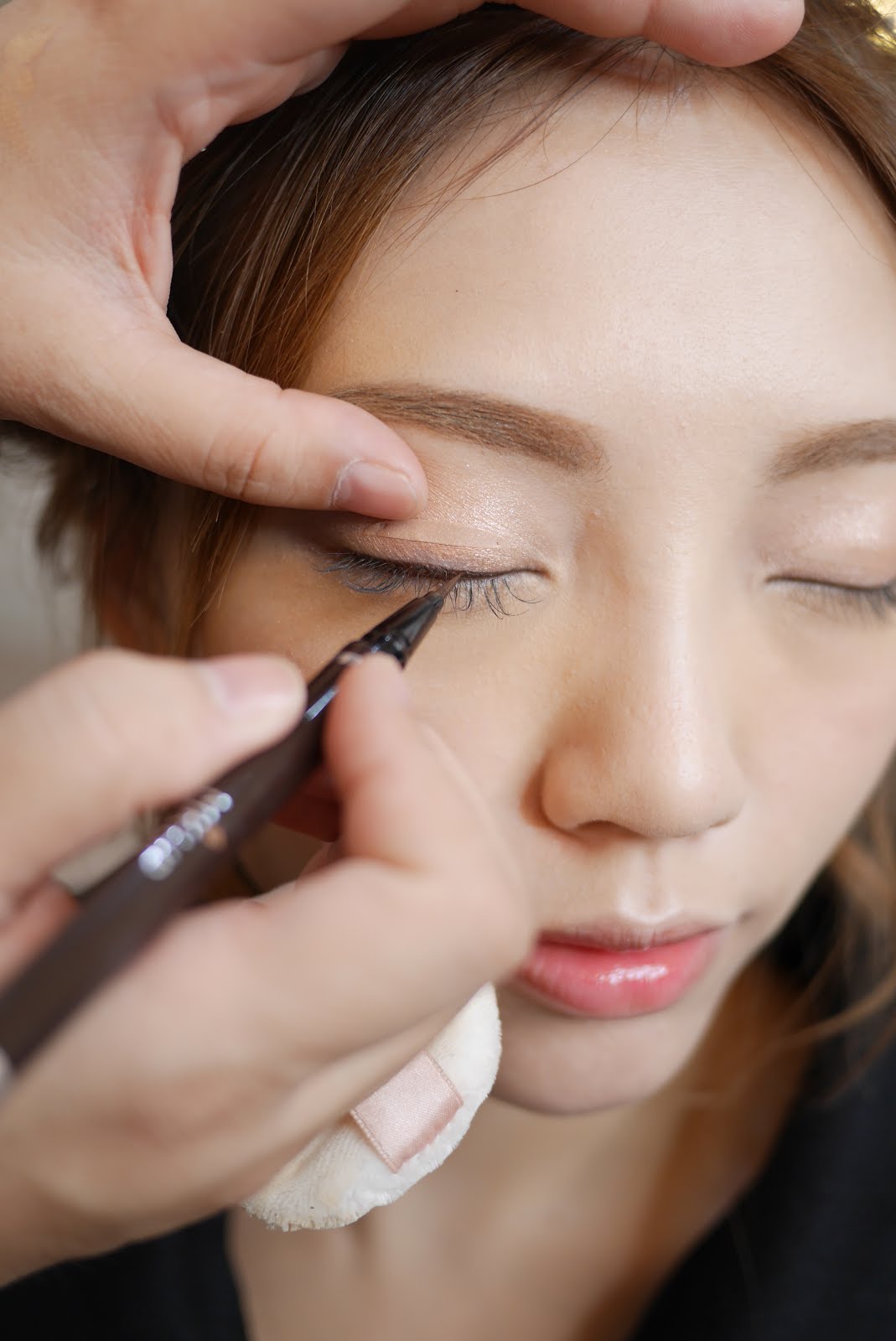 跟著我用咖啡色的極細眼線液筆