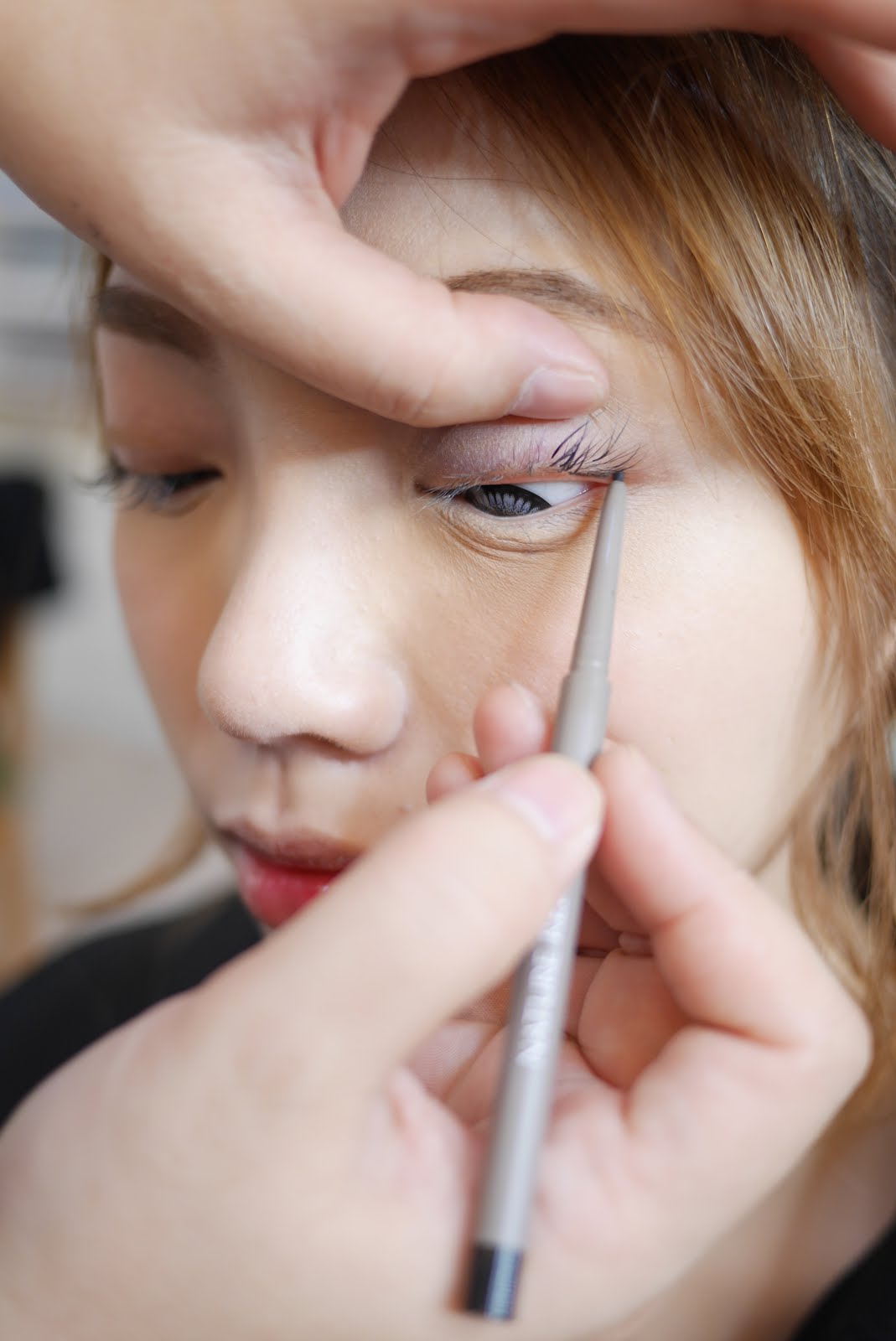 跟著用極細的眼線膠筆來描繪內眼瞼的空白處